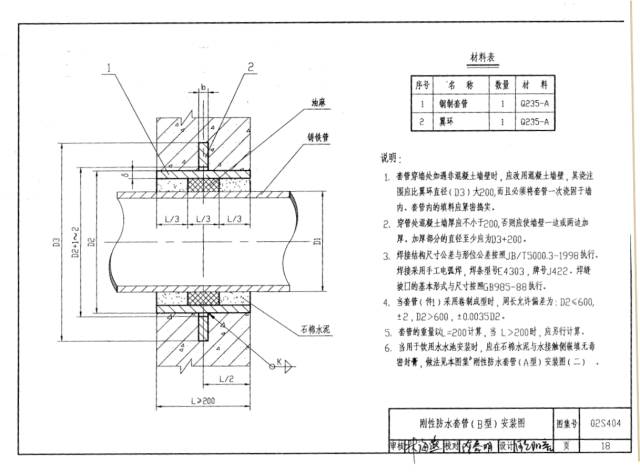 從02S404圖集可得知,a型剛性防水套管和b型剛性防水套管外形數(shù)據(jù)尺寸完全相同。唯一不同的是穿過防水套管的管道,a型穿過的為鋼管,b型穿過的為鑄鐵管。所以說ab型剛性防水套管在生產(chǎn)過程中沒有區(qū)別,可以放心使用。