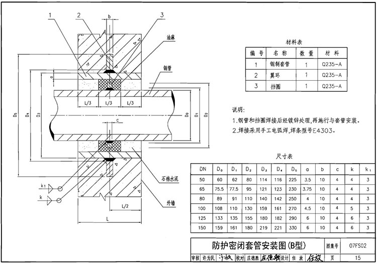 07FS02防護(hù)密閉套管圖集A B C D E F技術(shù)參數(shù)